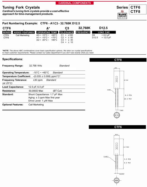 Cardinal晶振,CTF6石英插件晶振,CTF6-A1C3-32.768K-D12.5晶振