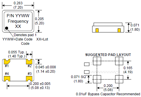 Crystek瑞斯克C33xx晶振,C3390-1.843200石英晶體振蕩器,CE3391-8.000,石英貼片晶振,尺寸圖