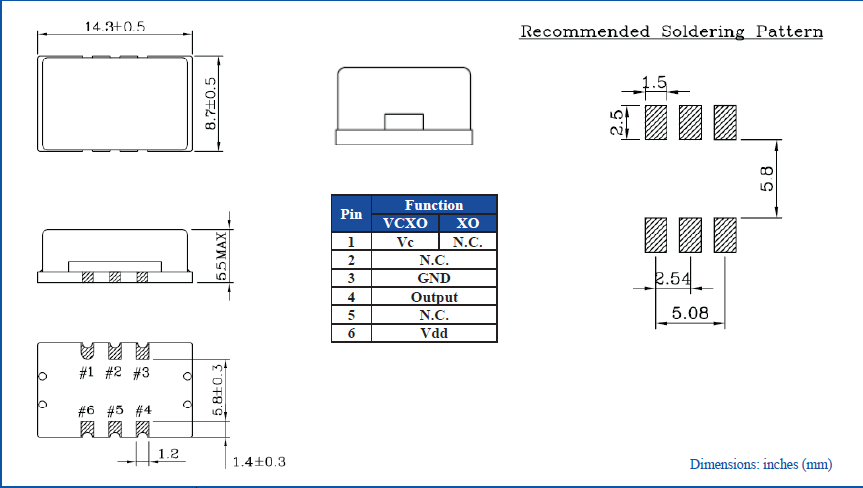 Size/Dimension尺寸 | 14.3 x 8.7 x 5.5 mm | 最小包裝數MPQ: | 1000 |