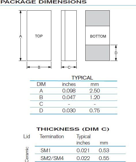 Type 系列: | MHz Crystal | 腳位 Termination: | 2 pad |