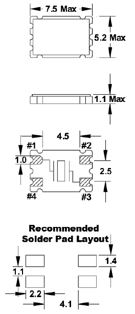 Frequency Stability頻率穩定度 | ±30ppm | 高度 Package Height: | 1.10mm |