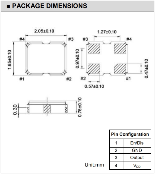 Type 類型 | XO | Package Height高度 | 0.75mm |