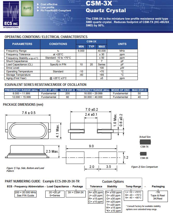 ECS-184-20-3X-TR | CSM-3X | 18.432MHz | ±50ppm | ±30ppm | 20pF |