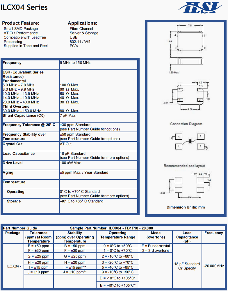 基礎等效串聯電阻 8MHz – 9.999999MHz 10MHz – 11.999999MHz 12MHz – 15.999999MHz 16MHz – 19.999999MHz 20MHz – 23.999999MHz 24MHz – 50MHz Third Overtone 30MHz – 150MHz |