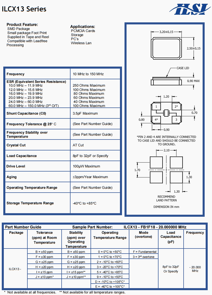 負載電容 | 18 pF Standard(see Part Number Guide for more options) |