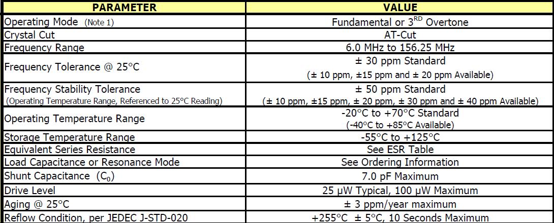 407的基本參數及工作條件如下:頻率范圍6 - 156.25 MHz,頻率公差,±30 ppm標準,(±10 ppm,±15 ppm和±20 ppm可用),頻率穩定度,±50 ppm標準(±20±±10日,15日,±30和40±ppm),操作溫度為-40°C + 85°C,磁帶和卷軸包裝,eia - 481 - 2兼容,符合RoHS /綠(6/6),穩定寬容/溫度范圍,在工作溫度范圍內(引用到25°C閱讀),模式MHz的振蕩頻率,F =基本,T = 3日泛音,M -表明兆赫和小數點.與最低頻率記錄4,有效數字的右邊“M”.