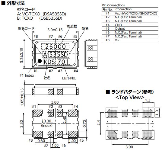 KDS晶振,DSA535SD晶振,無線通信設備晶振的不正確安裝會導致故障以及崩潰,因此安裝時,請檢查安裝方向是否正確。