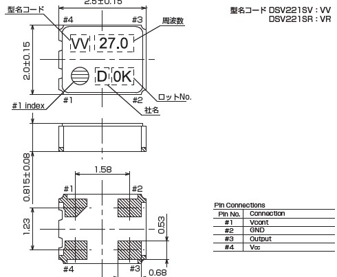 DSV221SV晶振,KDS石英晶振,VCXO壓控振蕩器,是只晶體本身起振需要外部電壓供應,起振后可直接驅動CMOS 集成電路,產品本身已實現與薄型IC(TSSOP封裝,TVSOP封裝)同樣的1mm厚度,斷開時的消費電流是15 µA以下,編帶包裝方式可對應自動搭載及IR回流焊接(無鉛對應)產品有幾種電壓供選1.8V,2.5V,3V3.3V,5V,以應對不同IC產品需要.