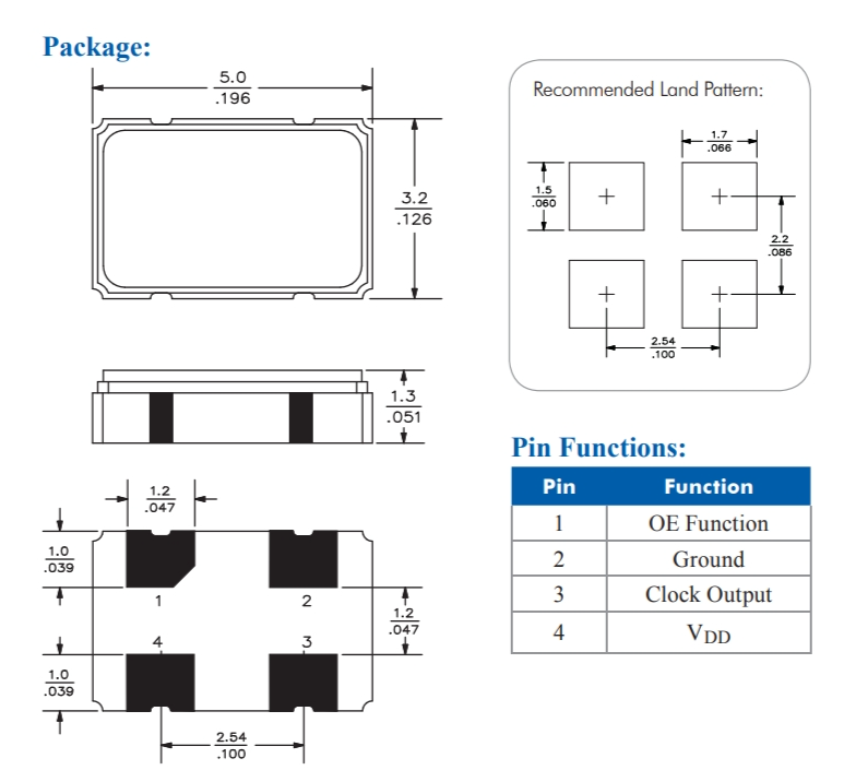 Size/Dimension尺寸 5.00mm x 3.20mm 最小包裝數MPQ: 1000