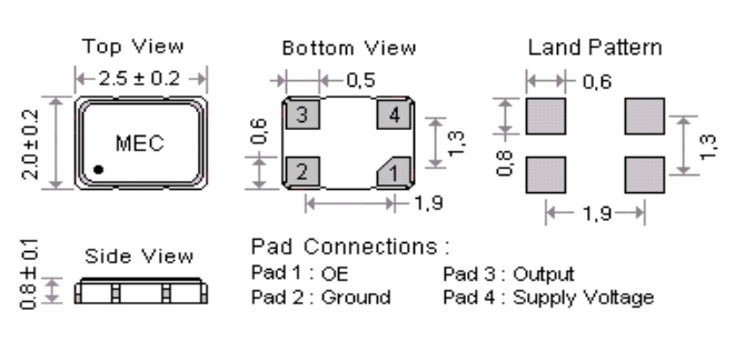 Frequency Stability頻率穩定度 ±2.5ppm 安裝方式 Installation : Surface mount