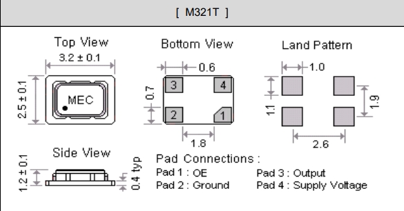 Type 類型 | TCXO | Package Height高度 | 1.2mm |