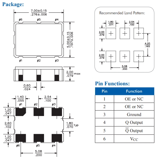 Size/Dimension尺寸 7.00mm x 5.00mm 最小包裝數MPQ: 1000