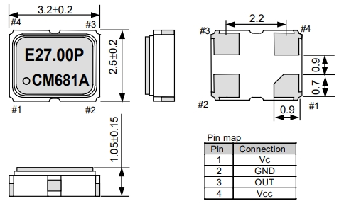 Size/Dimension尺寸  3.20mm x 2.50mm 最小包裝數(shù)MPQ: 3000