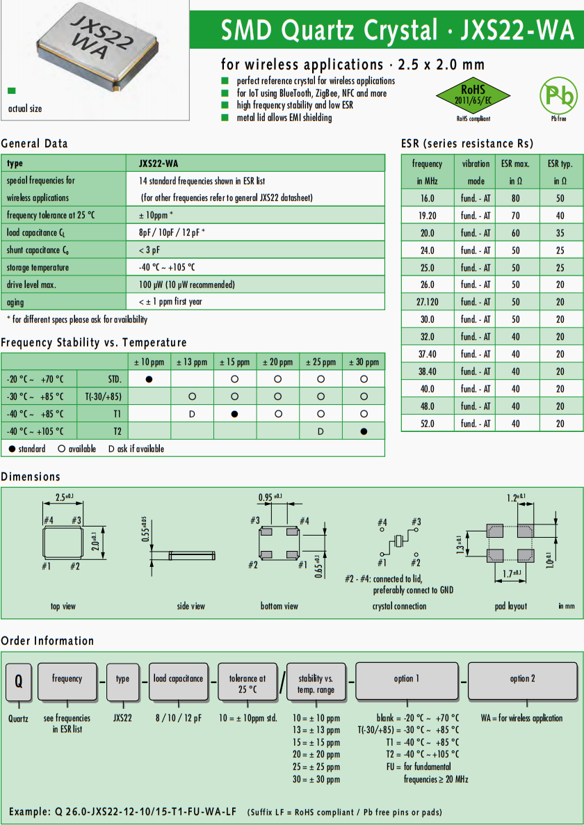 Q 19.2-JXS22-8-10/10-WA-LF | Jauch Quartz | JXS22-WA | 19.2MHz | ±10ppm | 8pF |
