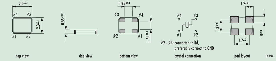 老化 | < ± 3 ppm first year (< ± 1 ppm for tol. ± 10 ppm) |