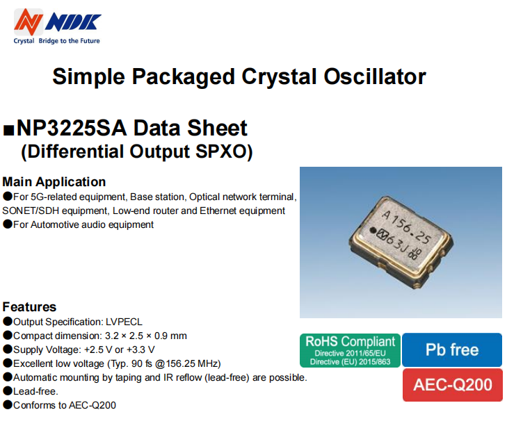 NP3225SA | 156.25MHZ | NSC5189A | 3.2x2.5 | LVPECL | -40?+105 | +2.5±0.125 |