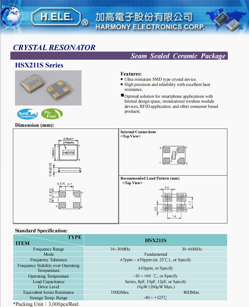 X2C026000BC1H-Z晶振,臺灣加高無源晶振,智能泊車系統晶振項目 | HSX211S |
