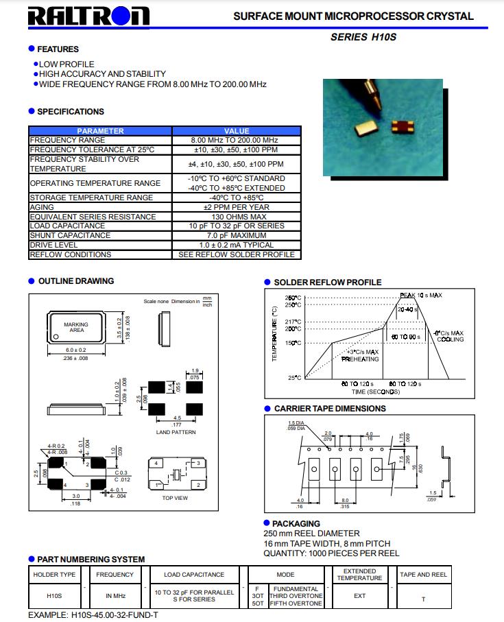 H10S-28.000-18-F-1030-EXT-TR | H10S | 28.000MHz | 6.0 x 3.5mm | ± 10 ppm | ± 30 ppm | 18 pF |