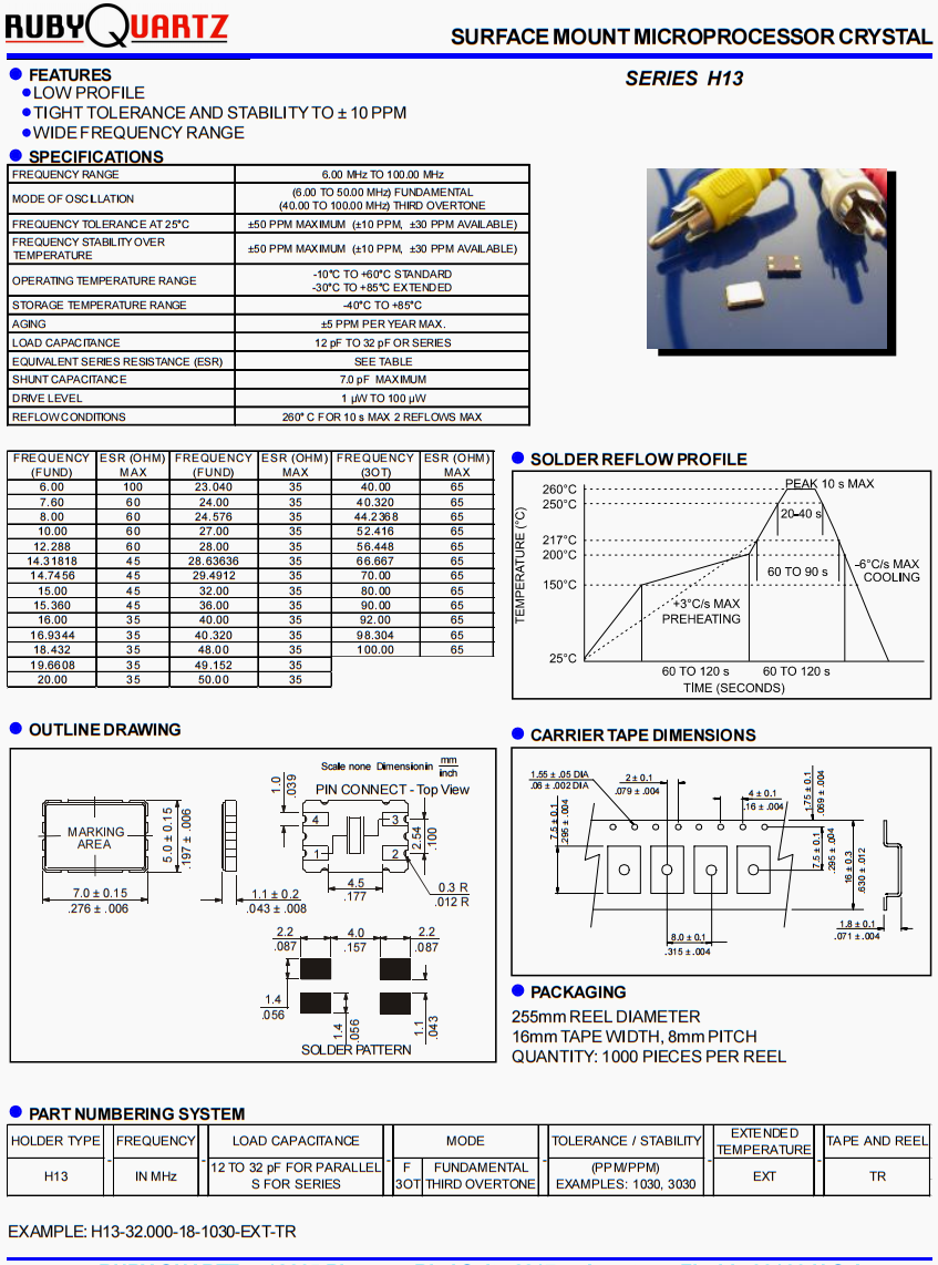 H13-32.000-18-1030-EXT-TR晶振,歐美rubyquartz晶體,耐高溫汽車晶振