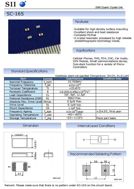 Q-SC16S03220C5AAAF|32.768KHz|1610mm|日本精工晶振特點