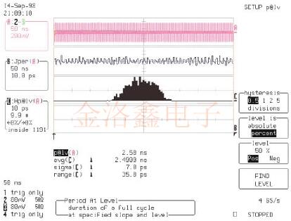 抖動和定時分析(JTA)選項提供了用于測量貼片振蕩器的長期,短期和環境穩定性的所有參數和功能.抖動跟蹤功能包括周期,頻率,周期到周期,占空比,事件和時間間隔誤差.這些函數中的每一個都繪制為時間的函數.此外,匹配參數還提供這些測量的直方圖和趨勢圖的數據.