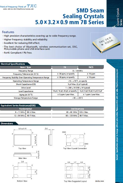 7B-8.000MAAJ-T | TXC晶振 | 7B | 8MHz | ±30ppm | -20°C ~ 70°C |