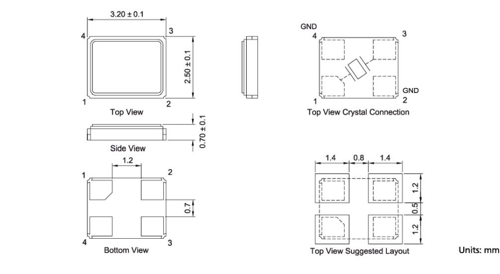 7M-16.000MAAJ-T,16MHz,-20~70°C,3225mm 尺寸圖