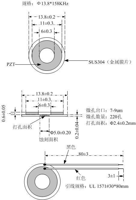 首頁晶振廠家微孔霧化片,13.8mm,158KHz霧化片