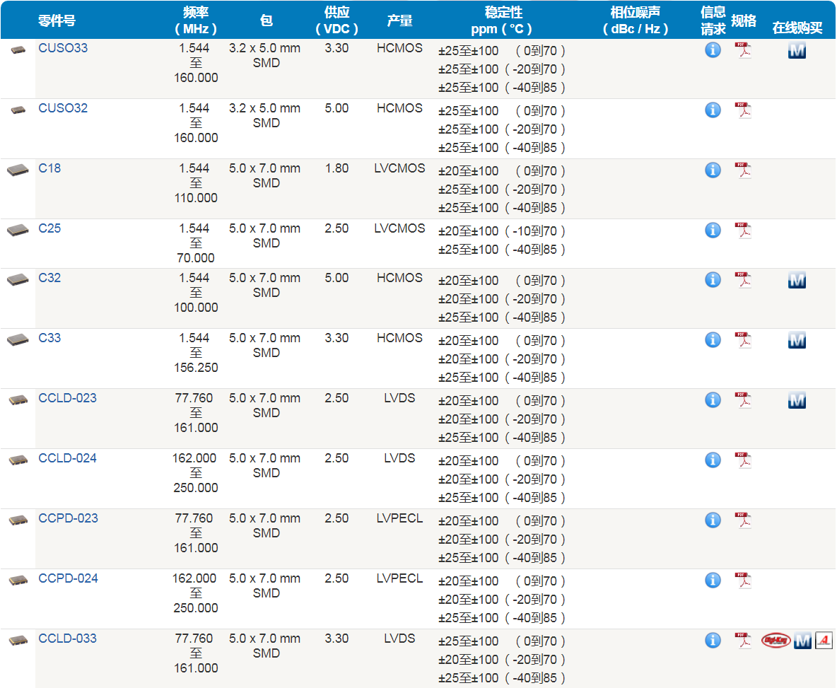 CCLD-033-50-100.000有源晶振C3290-64.000晶振CCPD-033-50-100.000進(jìn)口晶振C3290-66.666600進(jìn)口晶振CCLD-033-50-125.000瑞斯克晶振C3390-1.544瑞斯克晶振CCPD-033-50-156.250晶振C3390-1.843200晶振CCLD-033-50-156.250歐美晶振C3390-10.000歐美晶振CCPD-033-50-161.1328石英晶體振蕩器C3390-12.000石英晶體振蕩器CCPD-034-50-200.000溫補(bǔ)晶振C3390-12.288溫補(bǔ)晶振CVHD-950X-100壓控晶體振蕩器C3390-12.352壓控晶體振蕩器CVHD-037X-80貼片晶振C3390-14.318180貼片晶振CVHD-037X-100美國進(jìn)口晶振C3390-15.360美國進(jìn)口晶振CVHD-950-100.000石英晶振C3390-16.000石英晶振CCHD-575-50-100.000恒溫石英晶體振蕩器C3390-16.384恒溫石英晶體振蕩器CVHD-950-80.000美國晶振C3390-18.432歐美晶振CCHD-575-50-80.000差分晶振C3390-19.440差分晶振CVHD-037X-125OSC晶振C3390-2.048OSC晶振CVPD-037X-153.6壓電石英水晶振蕩子C3390-20.000壓電石英水晶振蕩子CVPD-034-50-155.52有源貼片晶振C3390-20.480有源貼片晶振CVSS-945X-100.000有源晶振C3390-24.000有源晶振CVSS-945-100.000進(jìn)口晶振C3390-24.576進(jìn)口晶振CVHD-950-122.880瑞斯克晶振C3390-24.704瑞斯克晶振CCSO-914X-250.000晶振C3390-25.000晶振CCSO-914X-1000.000歐美晶振C3390-3.686400歐美晶振CCSO-914X3-1000石英晶體振蕩器C3390-30.000石英晶體振蕩器CVCSO-914-1000溫補(bǔ)晶振C3390-32.000溫補(bǔ)晶振CXOH20-BP-10.000壓控晶體振蕩器C3390-32.768壓控晶體振蕩器CCSO-014-1090.000貼片晶振C3390-33.000貼片晶振CE3391-8.000美國進(jìn)口晶振C3390-33.333美國進(jìn)口晶振CCPD-033-50-77.760石英晶振C3390-34.368石英晶振CCPD-033-50-77.760恒溫石英晶體振蕩器C3390-35.000恒溫石英晶體振蕩器CCPD-033-50-106.250美國晶振C3390-35.328美國晶振CCPD-033-50-106.250差分晶振C3390-4.000差分晶振CCHD-575-25-24.576OSC晶振C3390-4.096OSC晶振CVHD-950-54.000壓電石英水晶振蕩子C3390-40.000壓電石英水晶振蕩子CVHD-037X-122.88有源貼片晶振C3390-44.736有源貼片晶振CCHD-950-50-45.1584有源晶振C3390-45.000有源晶振CCHD-950-50-80.000進(jìn)口晶振C3390-49.152進(jìn)口晶振CCHD-957-25-22.5792瑞斯克晶振C3390-50.000貼片石英晶振CCHD-950-50-100.000晶振C3390-51.840晶振CCPD-575X-20-100.000歐美晶振C3390-6.176歐美晶振CVSS-945-50.000石英晶體振蕩器C3390-7.372800石英晶體振蕩器CVSS-945-80.000溫補(bǔ)晶振C3390-8.000溫補(bǔ)晶振CVHD-950-125.000壓控晶體振蕩器C3390-8.064壓控晶體振蕩器CVHD-952-148.500貼片晶振C3390-8.192貼片晶振CVSS-945-122.880美國進(jìn)口晶振C3392-1.544美國進(jìn)口晶振CVCSO-914-245.760石英晶振C3392-1.843200石英晶振CVS575-622.080恒溫石英晶體振蕩器C3392-10.000恒溫石英晶體振蕩器CVS575S-500.000美國晶振C3392-12.000美國晶振CVPD-970X-622.080差分晶振C3392-12.288差分晶振CPRO33-100.000OSC晶振C3392-12.352OSC晶振CPRO33-10.000壓電石英水晶振蕩子C3392-14.318180壓電石英水晶振蕩子PPRO30-10.000有源貼片晶振C3392-15.360有源貼片晶振RFPRO33-500.000有源晶振C3392-16.0000有源晶振RFPRO33-1000.000進(jìn)口晶振C3392-16.384進(jìn)口晶振CPRO33-20.000瑞斯克晶振