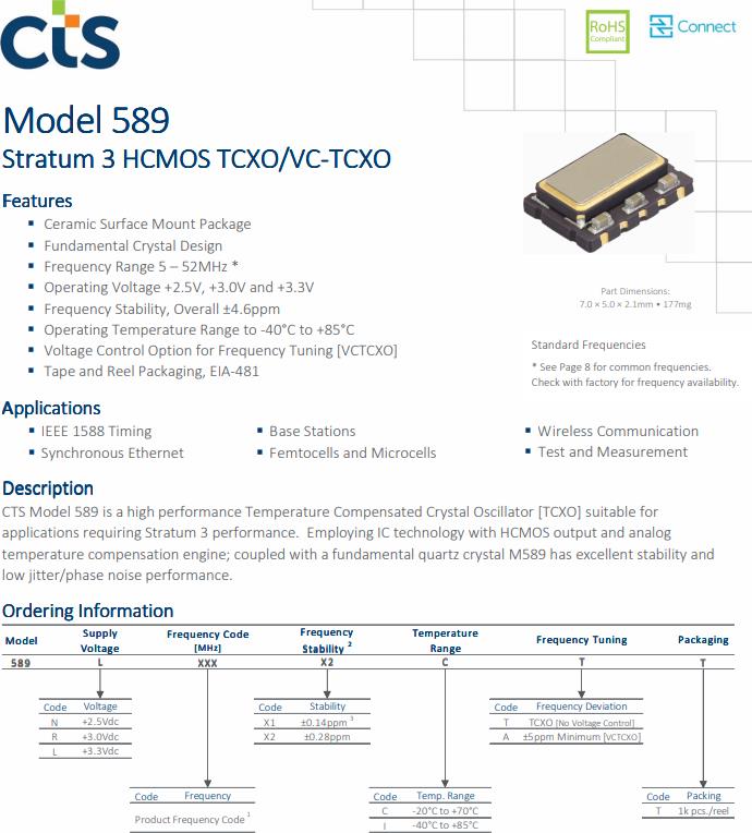具有低相位噪聲性能的TCXO為微蜂窩技術提供穩定性能和靈活性CTS589L120X2CTT