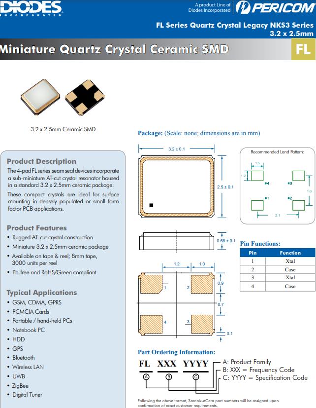 FL384WFIN1 | Diodes晶振 | SaRonix-eCera™ FL | 38.4MHz | ±12ppm |