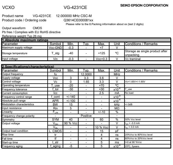 VG-4231CE壓控晶振編碼Q3614CE00008100用于可視化智能家居