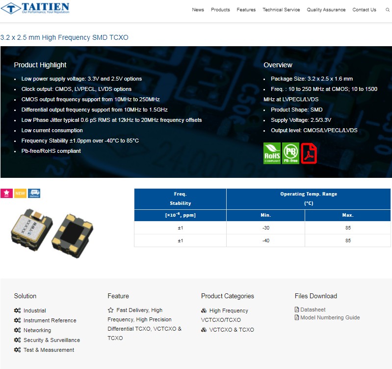 VTEUPLJANF-40.960000 | Taitien | VT | VCXO | 40.96MHz | 3.3V |
