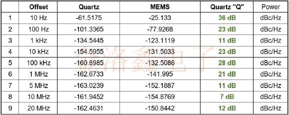 圖4:石英與MEMS的相位噪聲性能