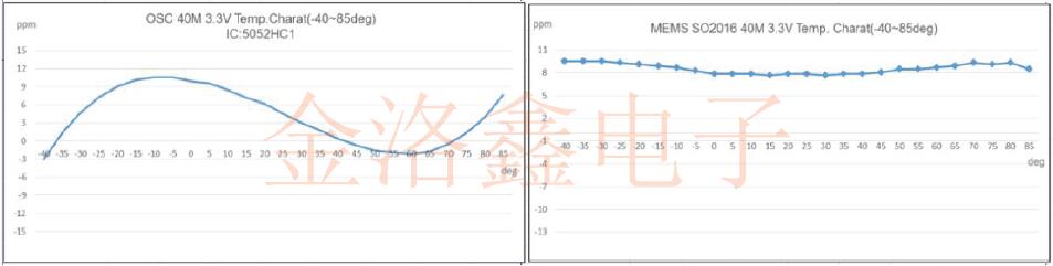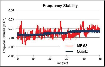 圖6:石英振蕩器和MEMS振蕩器穩定性圖
