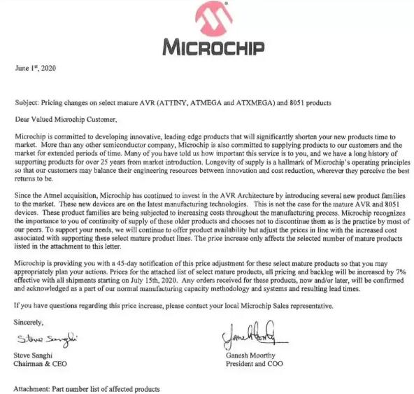 Microchip Crystal公司宣布7月15日起這些產(chǎn)品將漲價(jià)百分之七