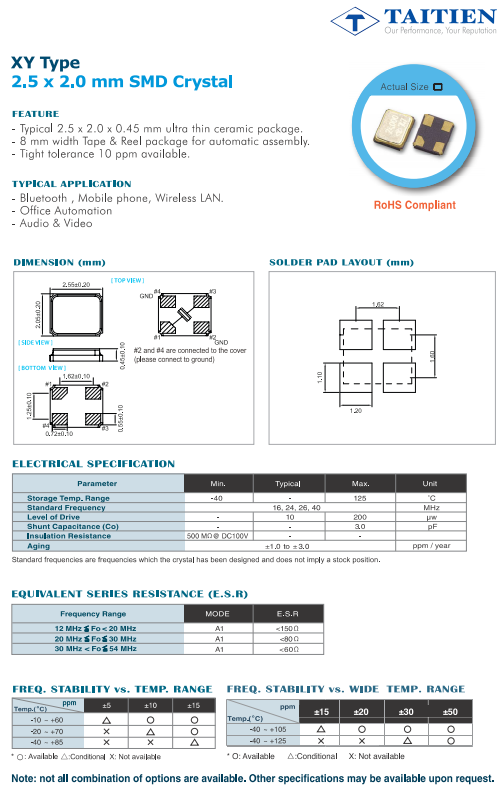 Taitien晶振規格 |